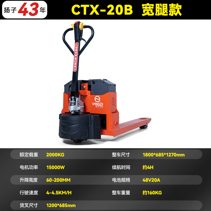 揚子半電動搬運車CTX,電動行走強勁載重,永磁無刷電機/高品質油缸/鉛酸鋰電可選