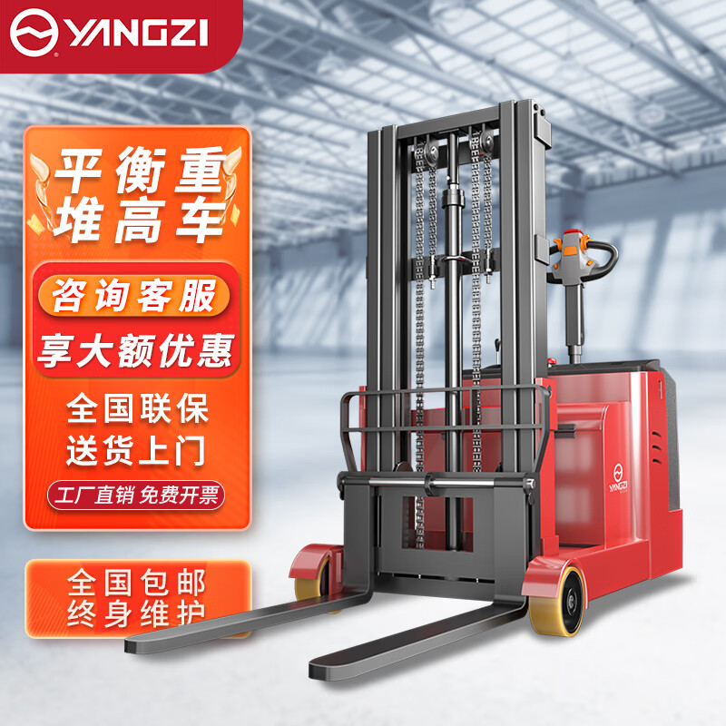 揚子全電動平衡重式堆高車CPD,荷載更大起升平穩,加厚C型鋼門架/可調節貨叉/加粗鏈條