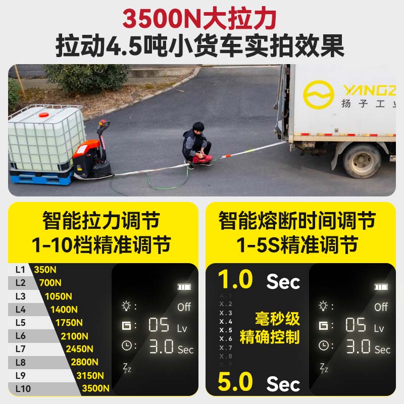 A001智能全自動(dòng)打包機(jī),3500N強(qiáng)勁大拉力,4000MA特斯拉同款鋰電池,超大按鈕防滑螺紋,操作簡(jiǎn)單便捷,人體力學(xué)防滑設(shè)計(jì),輕松手持不打滑