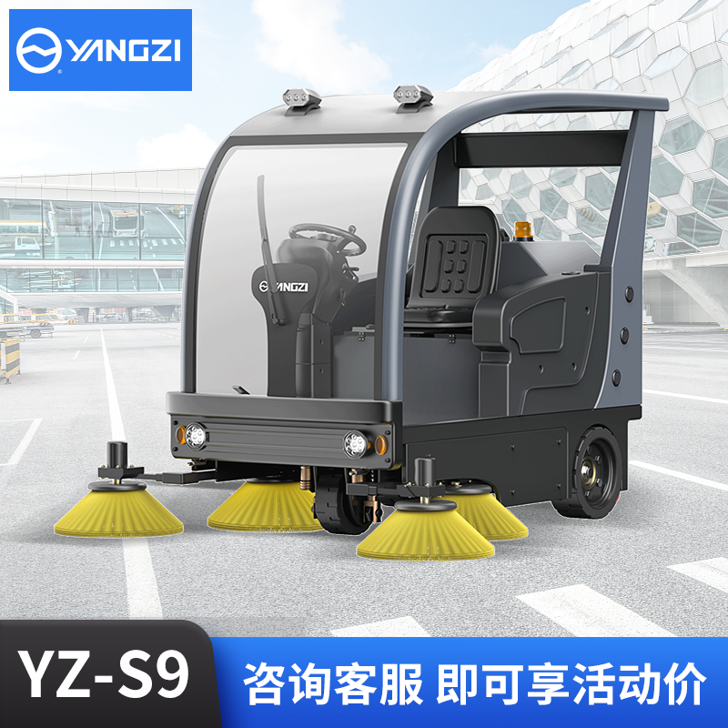 揚子S9駕駛式掃地機設備的控制面板按鈕一目了然,操作方便快捷;配備了四個清掃刷,清掃效率更高。同時毛刷使用耐磨損材料,不僅降低了使用成本,同時設備清掃能力更強。S9駕駛式掃地機配備舒適座椅,滿足人性化使用需求;耐磨損輪胎和LED大燈,使用更加安全。