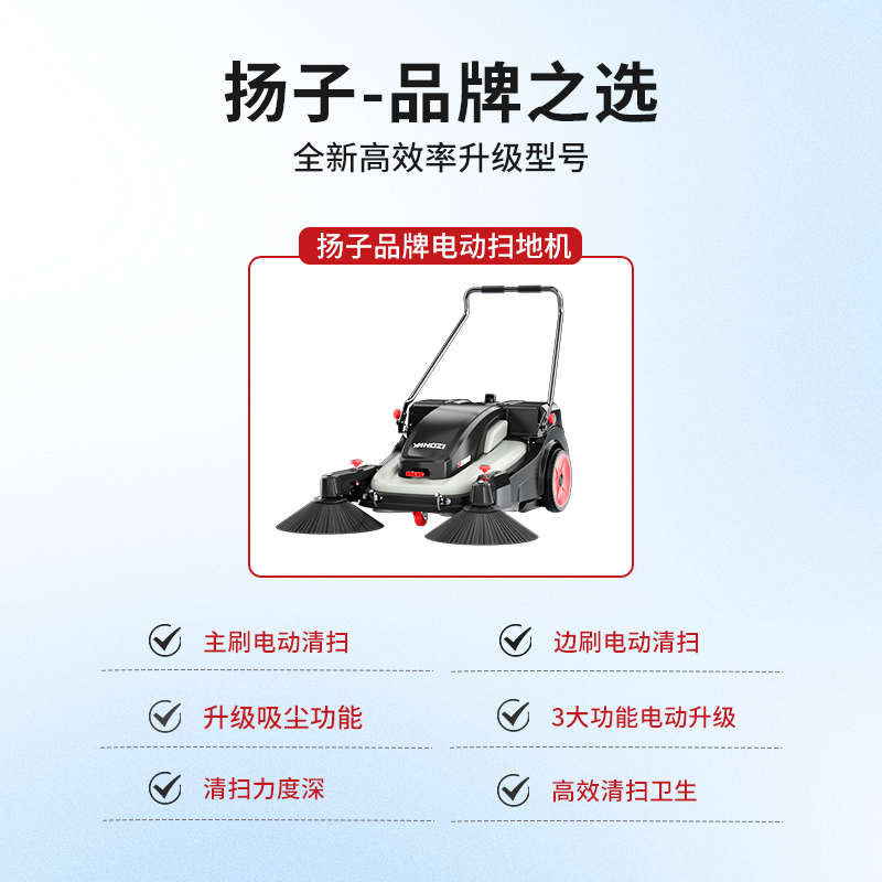 手推式電動掃地機讓清潔變得更高效,全新升級電動驅動,清潔效率5250㎡/h,知名品牌電池,壽命長,續航效能更持久,配備電控系統,軟啟動電源,更好得保護電機延長使用壽命。
